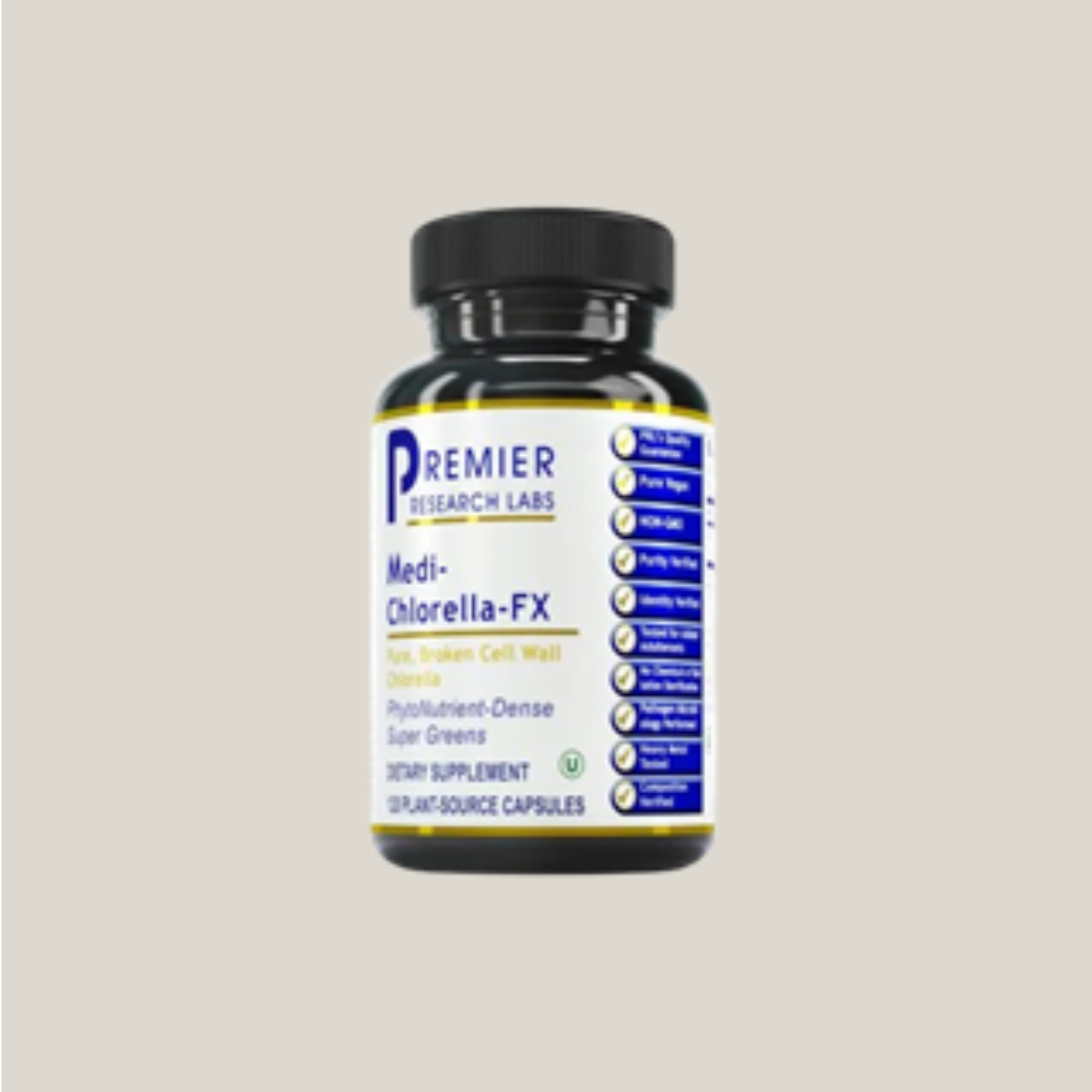 Medi-Chlorella-FX features organic chlorella, grown in fresh water (not in dark vats with tap water). This famous, ancient Super Nutrient was treasured by many cultures for centuries for optimal health and detox.