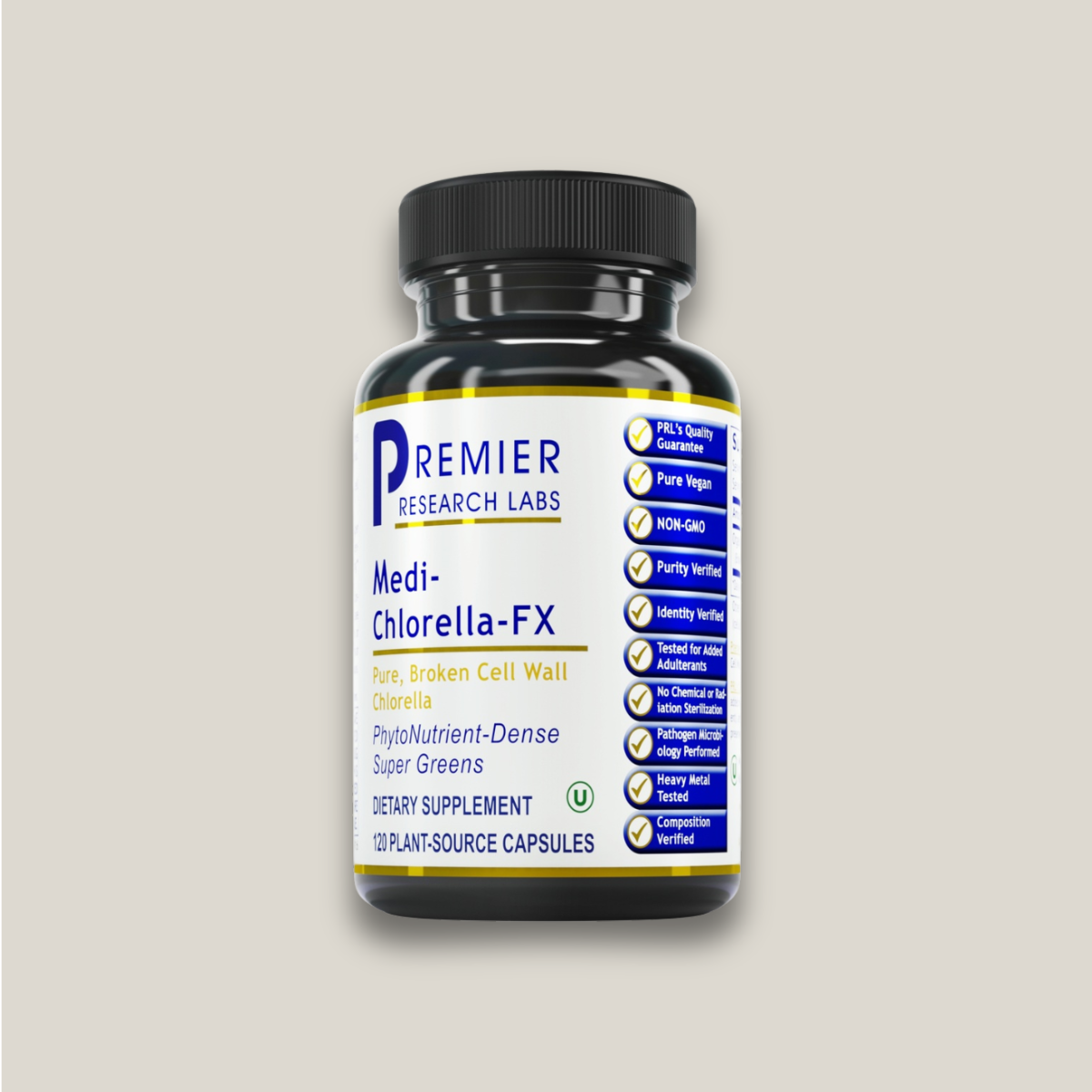 Medi-Chlorella-FX features organic chlorella, grown in fresh water (not in dark vats with tap water). This famous, ancient Super Nutrient was treasured by many cultures for centuries for optimal health and detox.